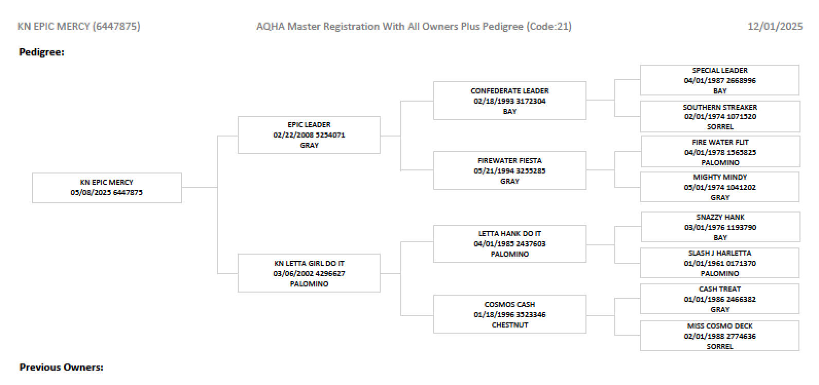 Click Here for Pedigree
